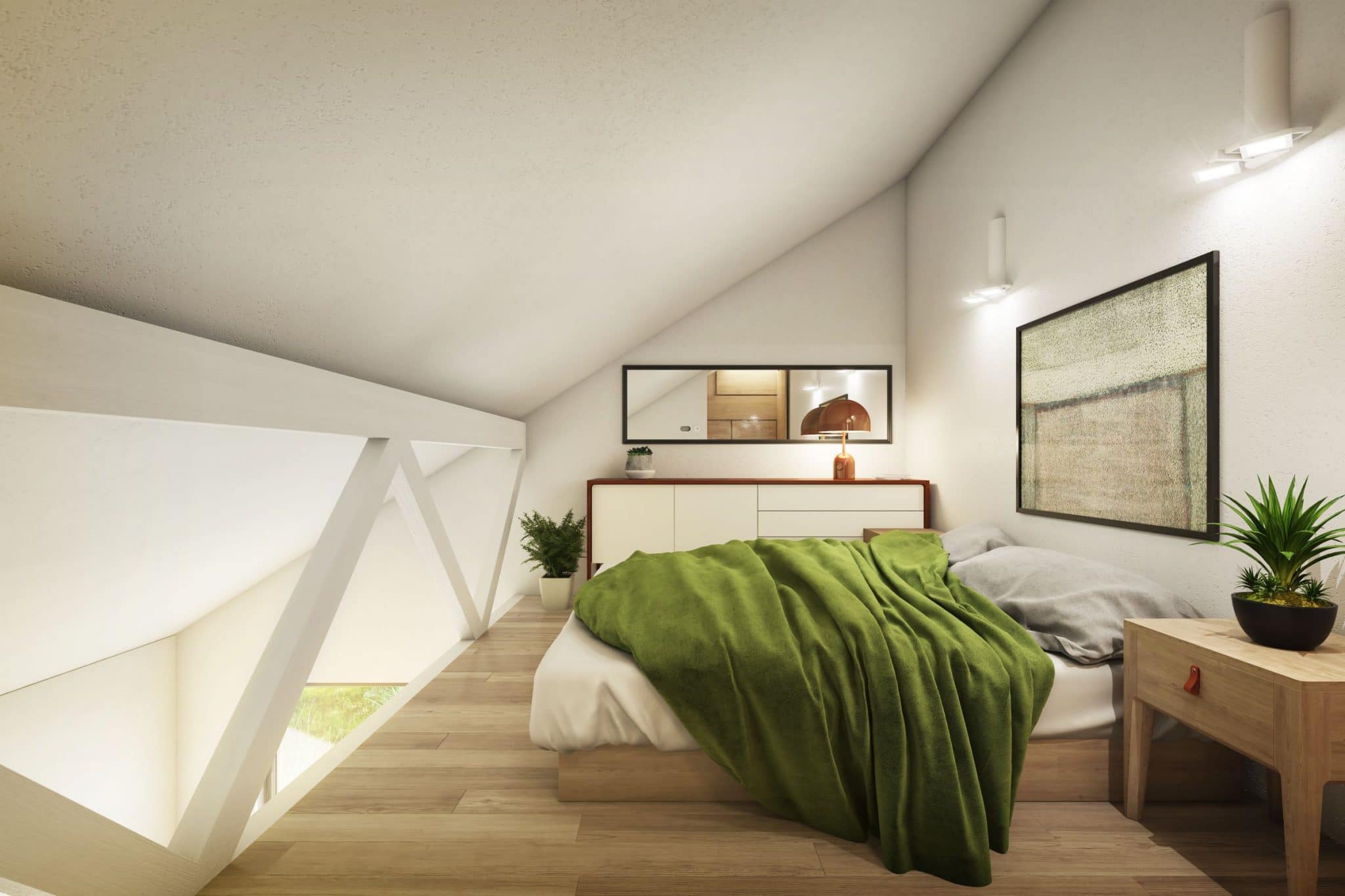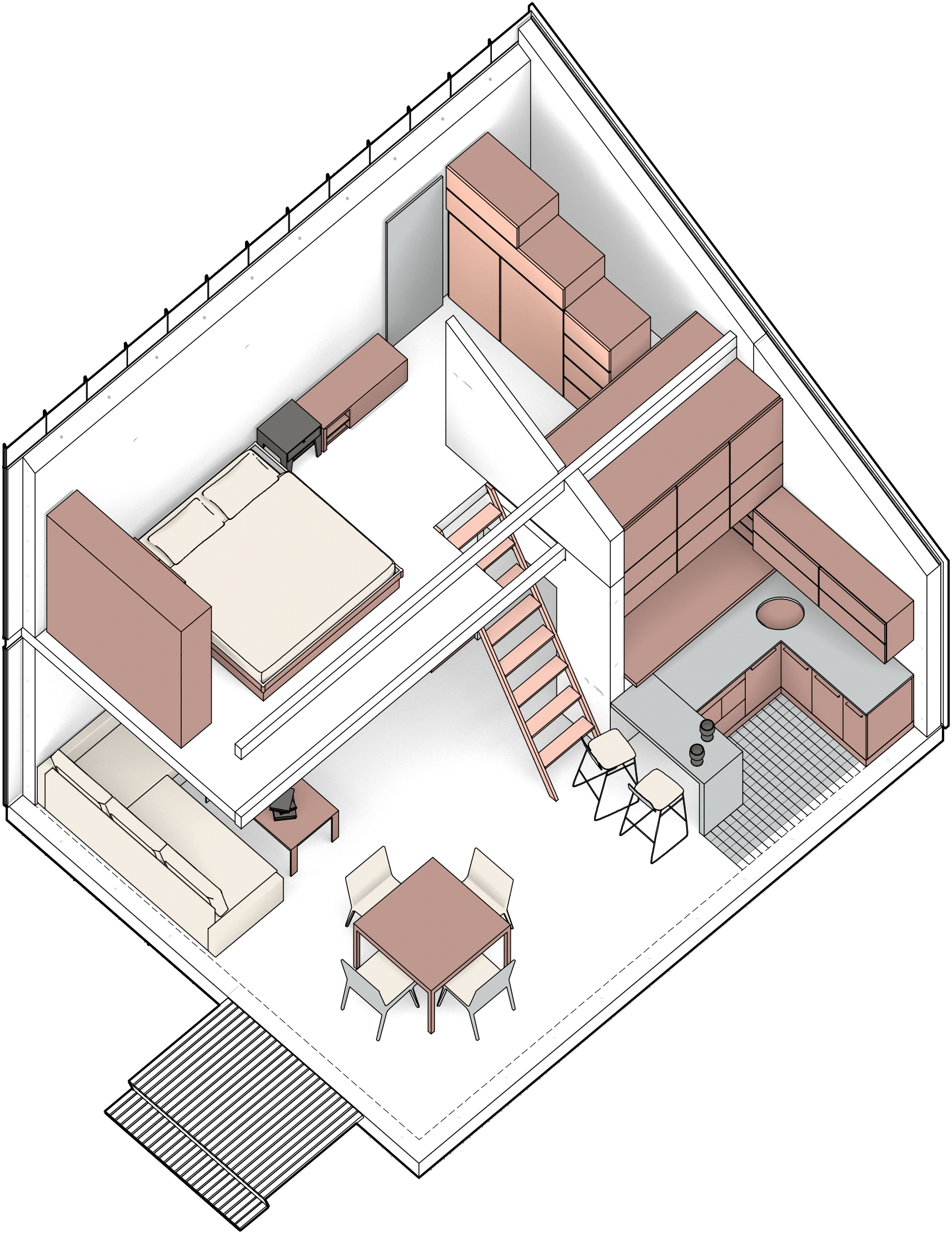 Obecnie w budynku Solace znajduje się pięć pomieszczeń: łazienka, kuchnia połączona z dużym salonem oraz dwie sypialnie na górze na antresoli. Obecny model ma 50 metrów kwadratowych. Chcemy wdrożyć w przyszłości większe modele po 75–100 mkw. Obecne rozwiązanie jest jednak optymalne, pozwalające na taką, a nie inną cenę.